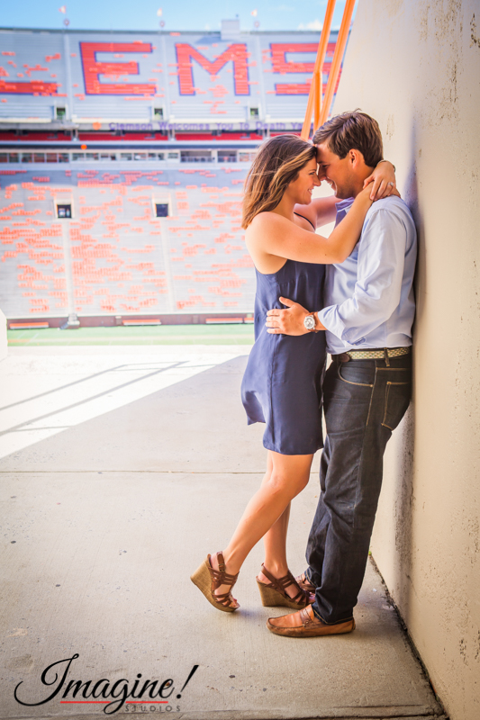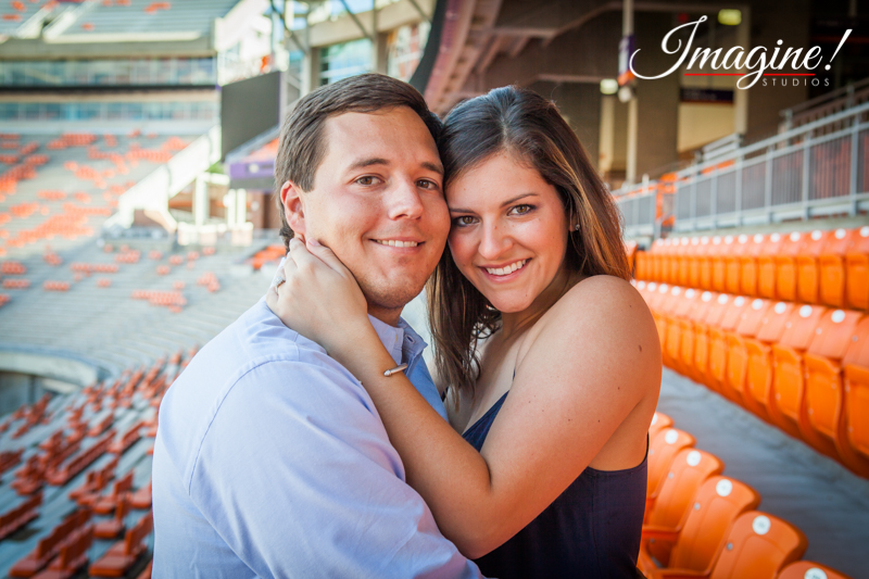 Brad and Hannah chose a gorgeous day for their engagement session at Death Valley! We started the session at one of Clemson’s most famous icons, Howard’s Rock. We then proceeded around the stadium, stopping for some beautiful photos in the stands, the portals and concourse area, and finishing up among the bright Tiger-orange seats in the WestZone.